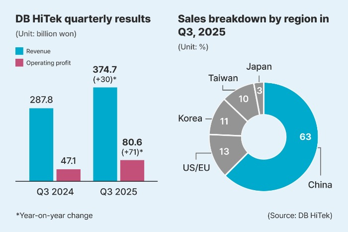 Rising demand for power semiconductors is proving a tailwind to DB HiTek, driving its operating profit 71% higher on-year to 47.1 billion won ($32 million) in the third quarter.
