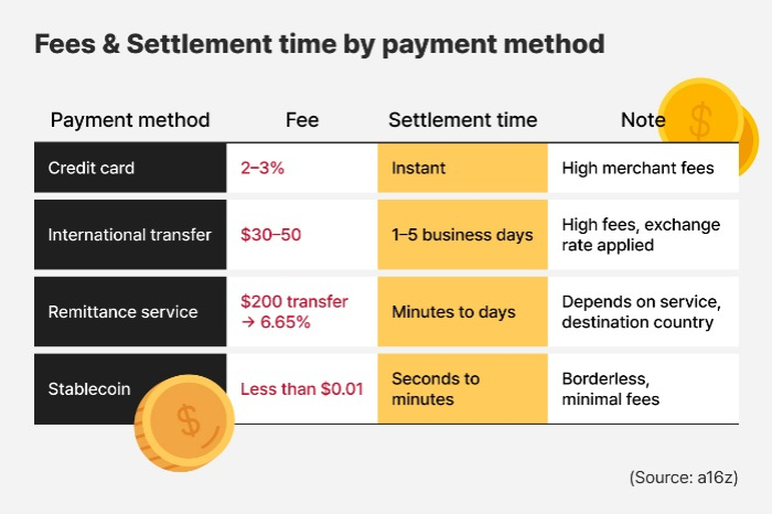 Stablecoin transactions, by contrast, cost a fraction of traditional fees.