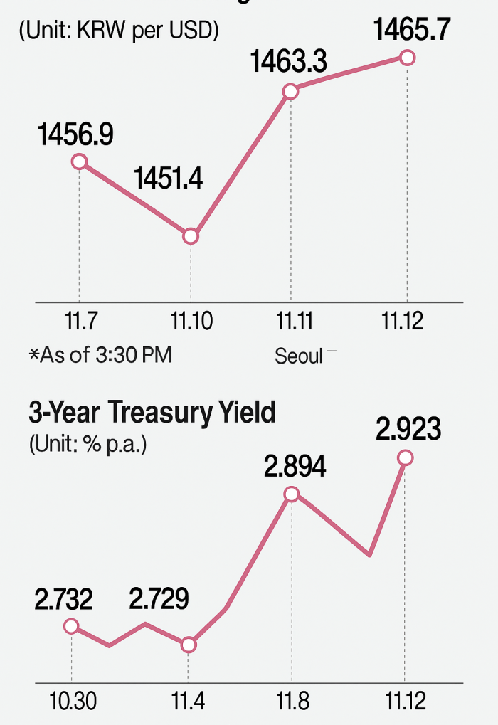 The won has been trading at levels reminiscent of December 2024, when the declaration of martial law fueled political uncertainty and drove the exchange rate as high as 1,442 on Dec. 3.